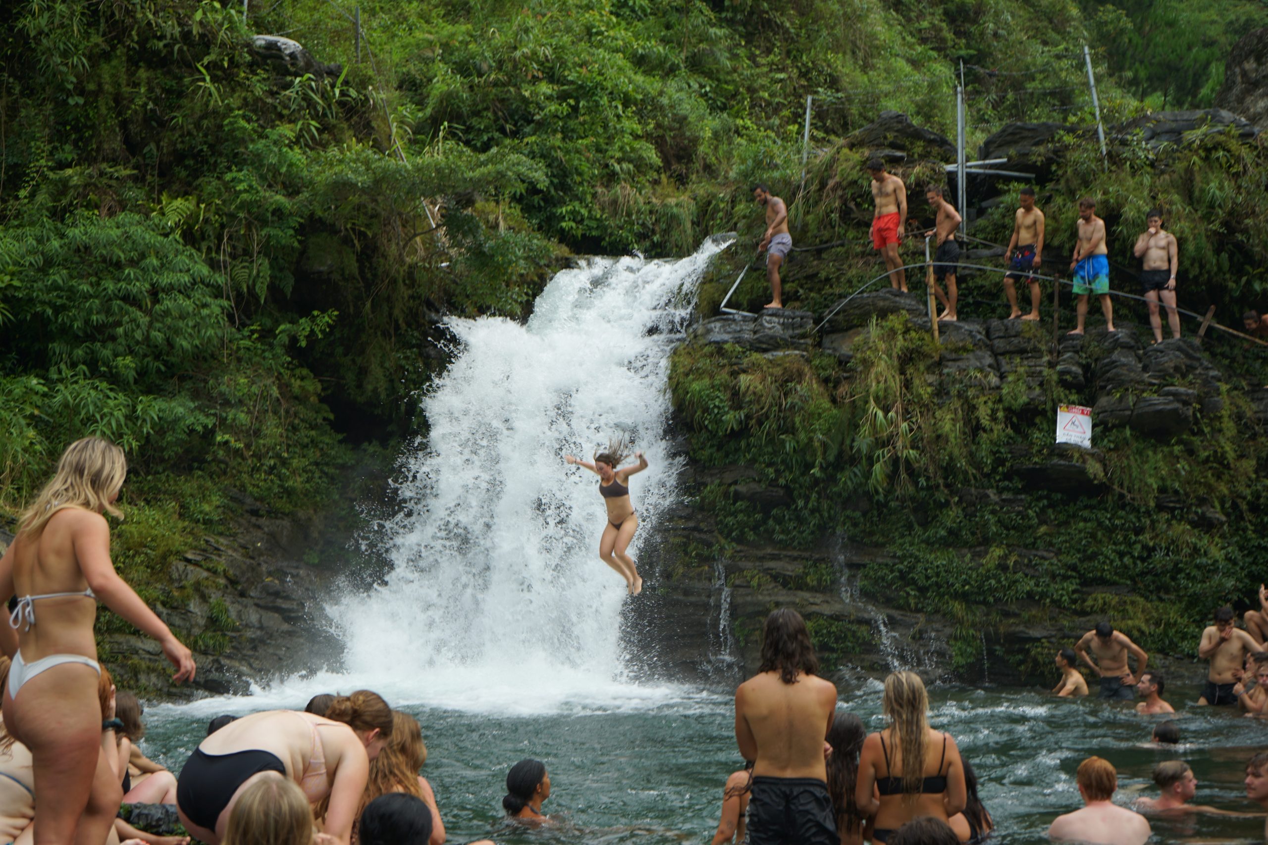 – 8:00am: We are starting form our office Ha Giang Road Trip Hostel & Tour or will pick up from your hotels/homestay around Ha Giang city, get 1,5-2hours hiking visit Thon Tha & Ha Thanh villages the 2 beautiful villages of Tay people, enjoy the swim in the waterfall in Ha Thanh village (if weather allow).